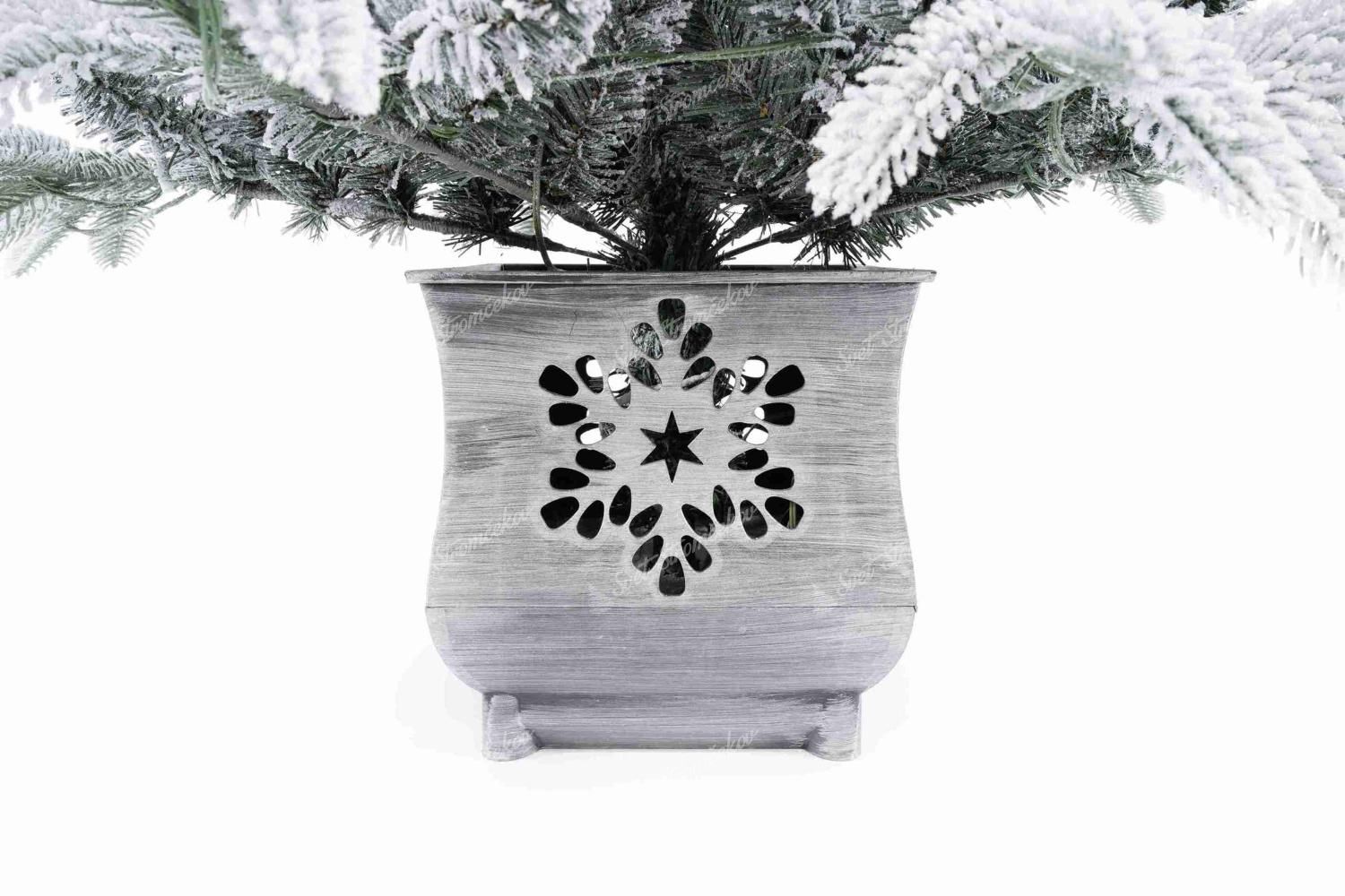 Ta biała choinka idealnie nadaje się do dekoracji mniejszych wnętrz, biur, przedpokojów czy jako świąteczna ozdoba do ustawienia na podłodze w salonie. Drzewko zostało osadzone w estetycznej, nowoczesnej doniczce, która podkreśla jego zimowy charakter.
