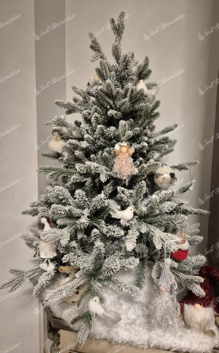Wysokiej jakości igliwie wykonane z materiału PE rozmieszczone jest na całym obwodzie drzewka, a jego wnętrze wypełnia klasyczne PVC igliwie gęsto pokryte realistycznym śniegiem. Dzięki najnowocześniejszej technologii nakładania śniegu, pozostaje on stabilny i nie opada. To sprawia, że Świerk Królewski to niezawodna choinka biała o niezwykle naturalnym wyglądzie.