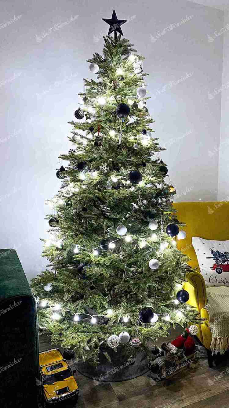 Model ten wyróżnia się pełną strukturą gałęzi, stożkowym i proporcjonalnym kształtem oraz starannie dopracowanymi detalami, które nadają mu luksusowy i nowoczesny wygląd. Idealnie nadaje się zarówno do tradycyjnych, jak i nowoczesnych wnętrz.