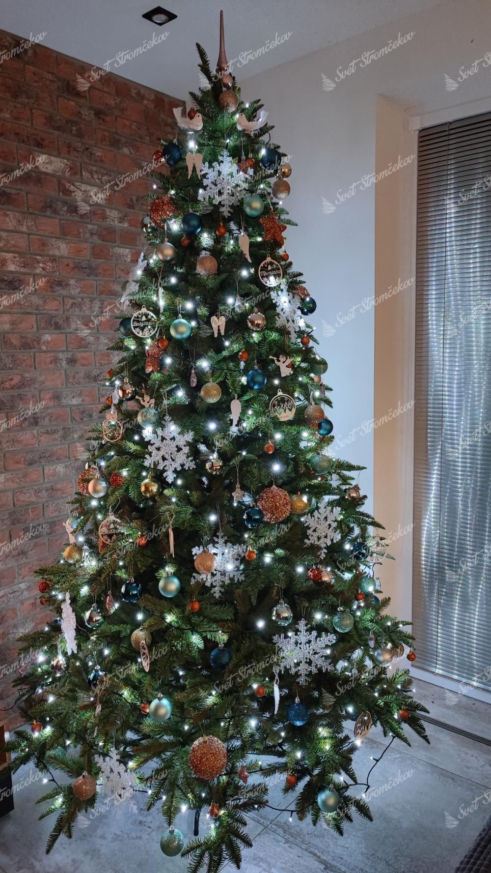 Dzięki systemowi rozkładania typu parasol, każda gałązka trafia na swoje miejsce, tworząc symetryczny i idealnie rozłożony kształt. Choinka została wykonana z trwałych materiałów PE i PVC, a solidna stalowa konstrukcja oraz metalowy stojak gwarantują stabilność i bezpieczeństwo użytkowania.