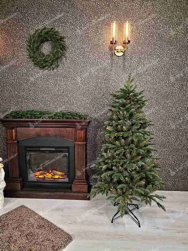 Sztuczna choinka jak żywa PE, wysokość 150 cm, szerokość 80 cm, typ igliwia – PE + PVC, jodłowe igły PE w naturalnym zielonym kolorze, wykonanie – gęste, długość czubka 20 cm, stojak plastikowy, ilość części – 2