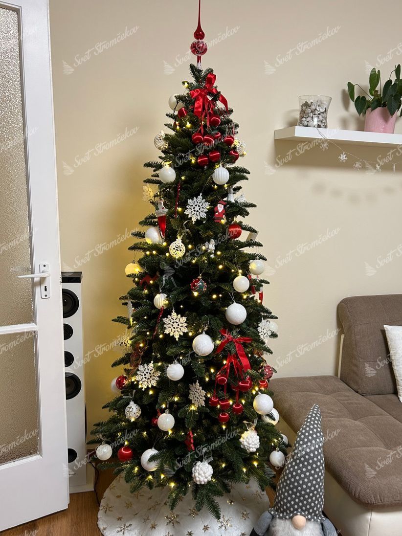 Dzięki swojemu wąskiemu kształtowi, choinka świetnie sprawdzi się w mniejszych mieszkaniach, wąskich korytarzach, biurach czy pokojach dziecięcych. System rozkładania typu parasol gwarantuje łatwy i rýchly montaż oraz idealne rozmieszczenie gałązek.