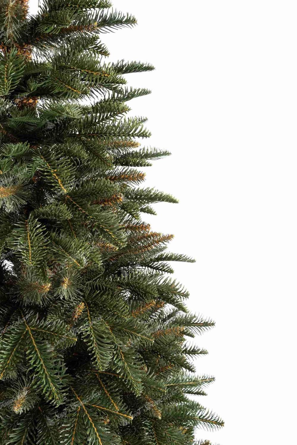 Drzewko zostało wykonane z realistycznego igliwia PE o naturalnie zielonym odcieniu, które doskonale odwzorowuje żywą jodłę. Wnętrze choinki wypełniają klasyczne gałązki z PVC, dzięki czemu całość sprawia wrażenie bardzo gęstej i bujnej. Dodatkowym atutem jest realistyczny, brązowy pień, który jeszcze bardziej podkreśla naturalny wygląd.