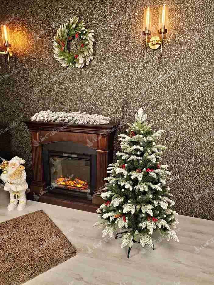 Drzewko zostało wykonane z wysokiej jakości igliwia PE, które uzupełnia klasyczne PVC igliwie w centralnej časti choinki. Konce wszystkich gałązek są starannie obsypane sztucznym śniegiem, co sprawia, że choinka wygląda jak naturalna choinka ośnieżona prosto z zimowego lasu.