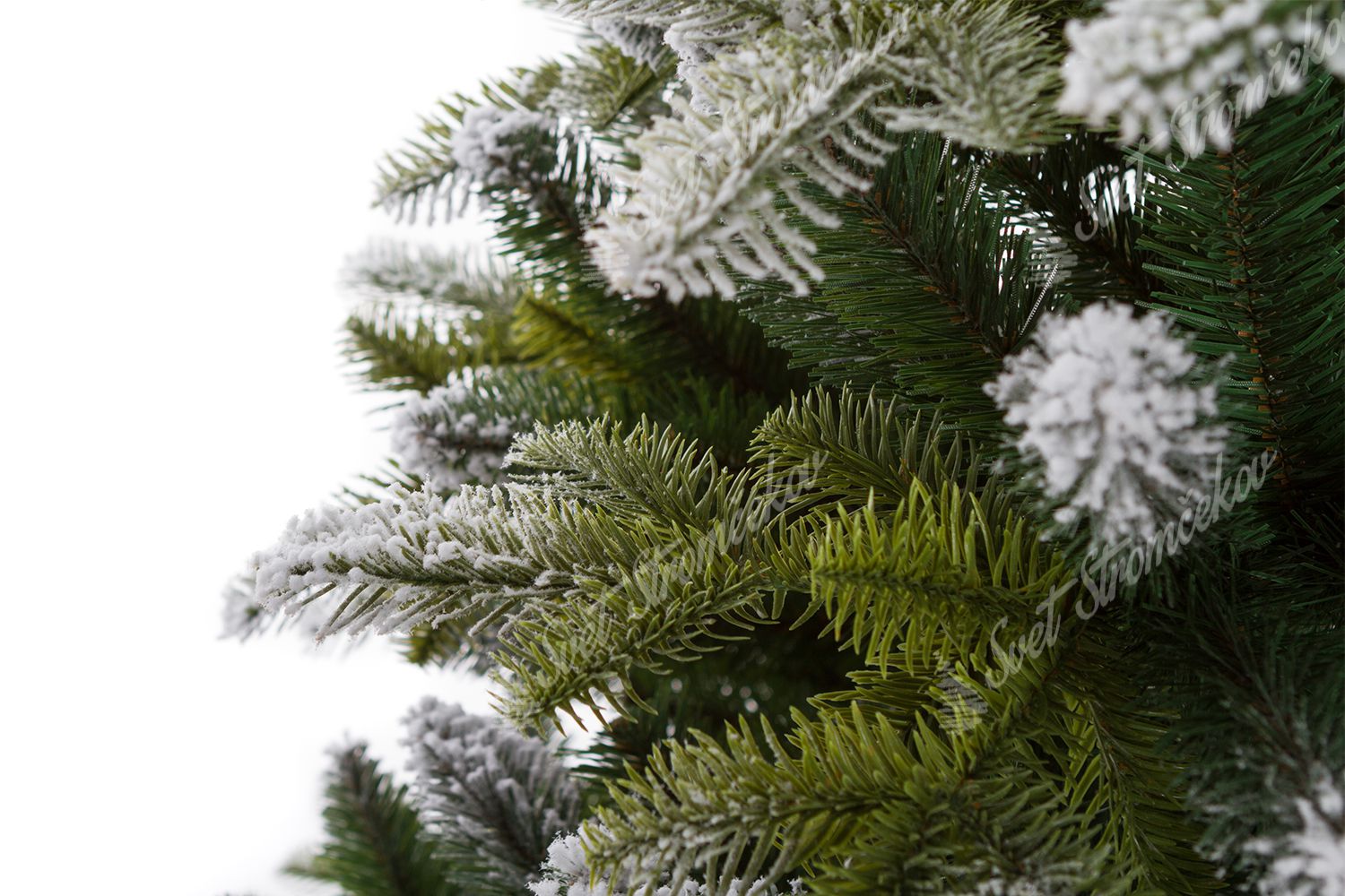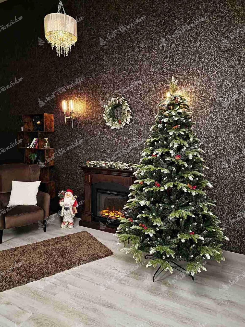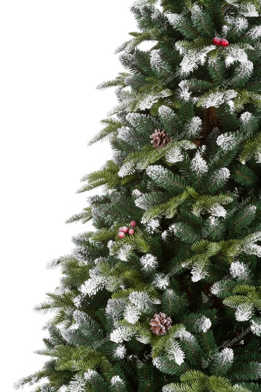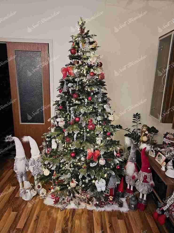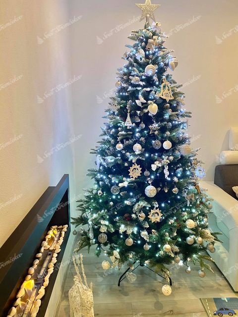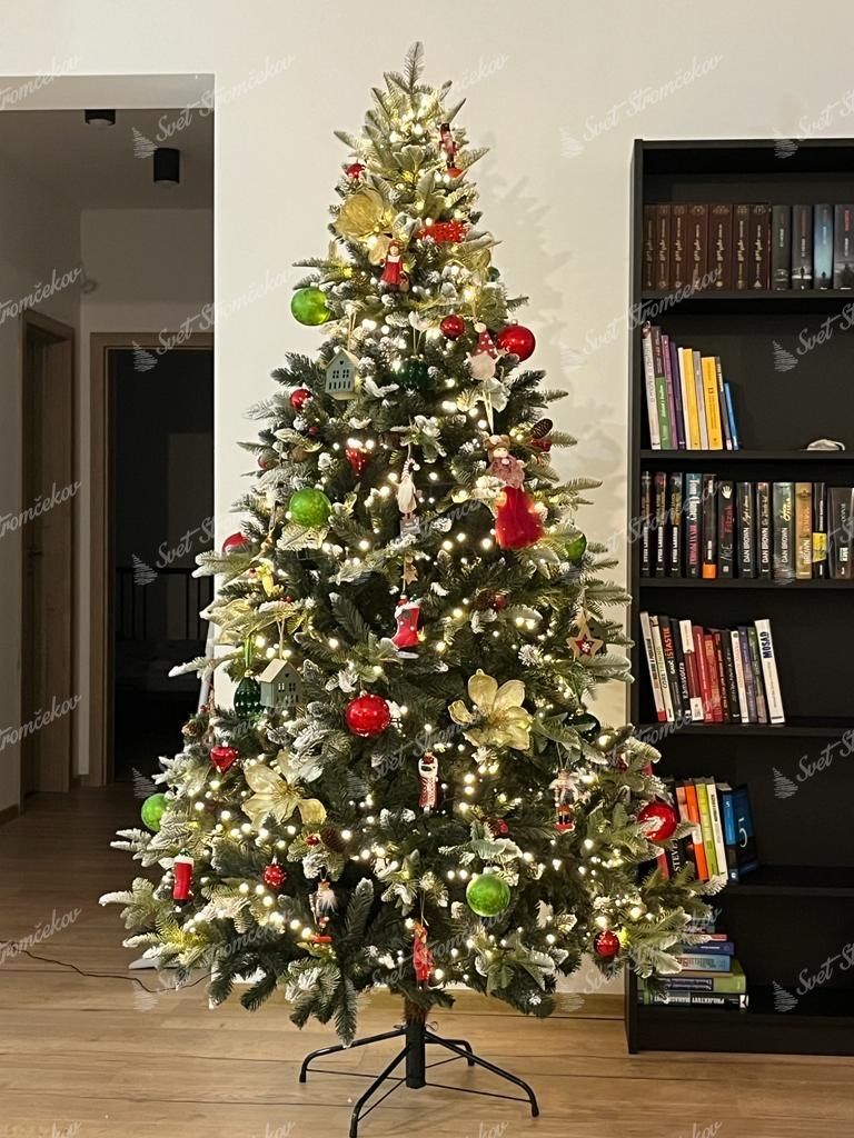 Drzewko zostało wykonane z wysokiej jakości igliwia PE, które uzupełnia klasyczne PVC igliwie w centralnej časti choinki. Konce wszystkich gałązek są starannie obsypane sztucznym śniegiem, co sprawia, że choinka wygląda jak naturalna choinka ośnieżona prosto z zimowego lasu.