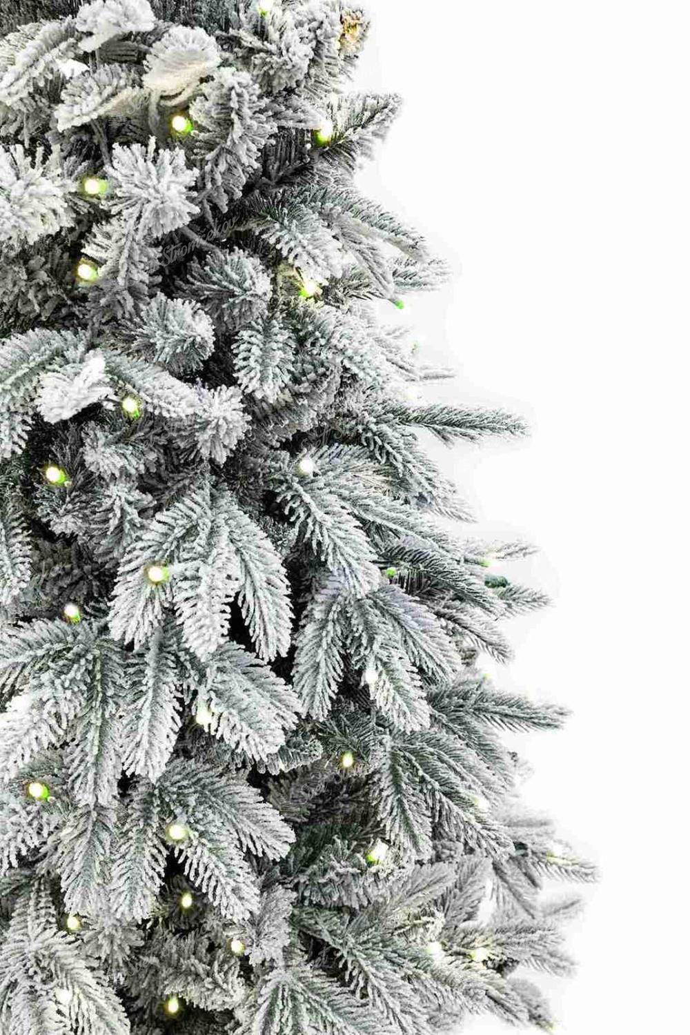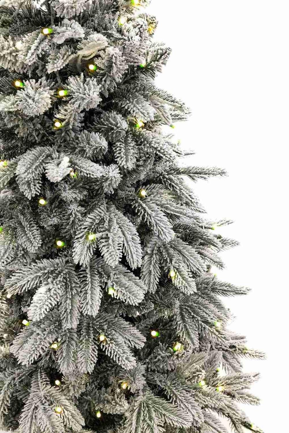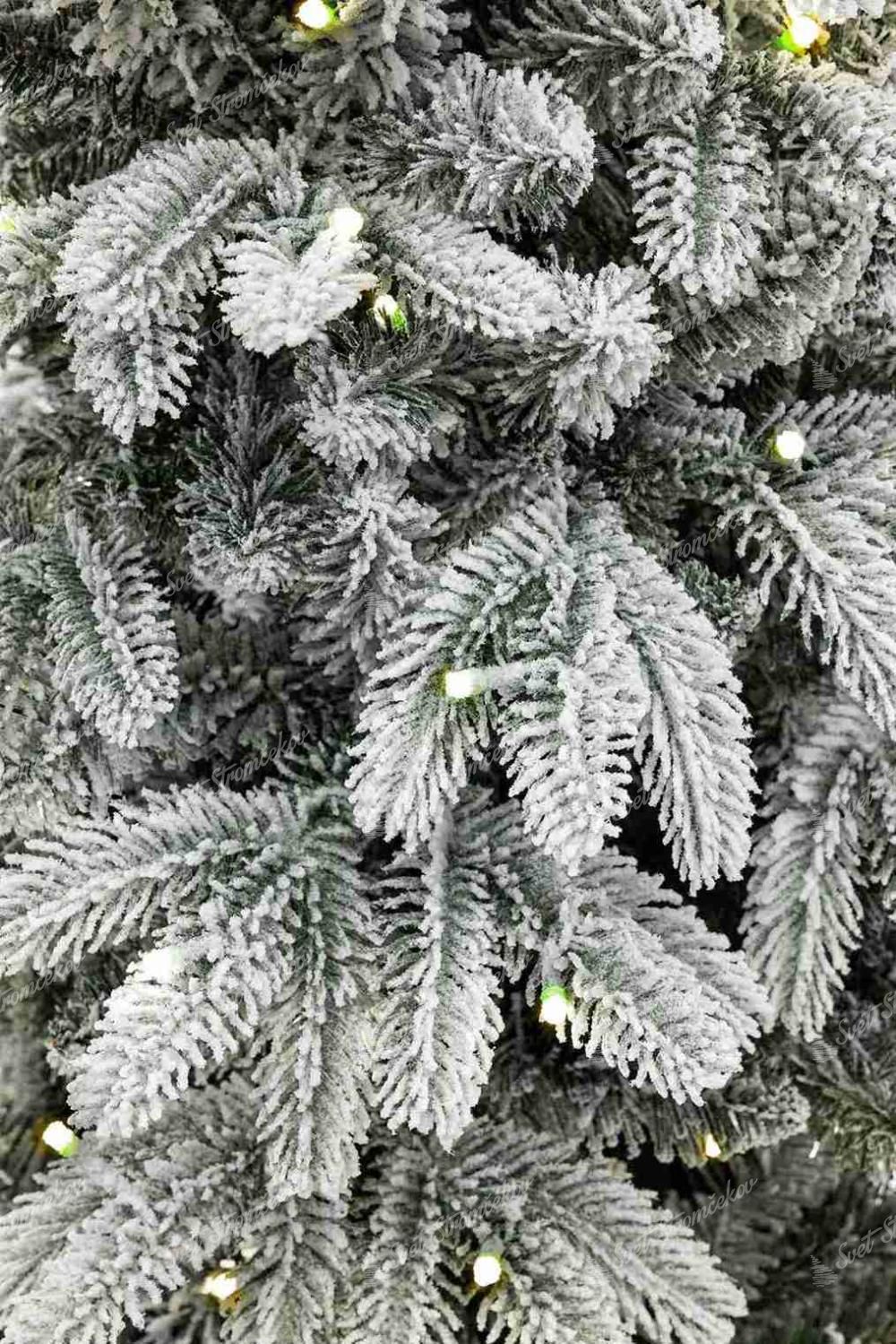 Drzewko wykonane jest z połączenia realistycznych gałązek PE i klasycznego PVC, a całość pokryta jest gęstą warstwą sztucznego śniegu. Efekt świeżo ośnieżonych gałązek podkreślony został fabrycznie zamontowanym oświetleniem LED w ciepłej bieli, które posiada 8 trybów świecenia. Dzięki temu choinka z lampkami LED tworzy przytulną i uroczystą atmosferę bez potrzeby samodzielnego montowania lampek.