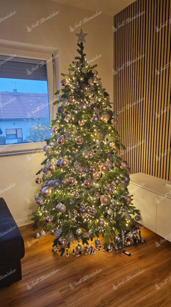 Choinka została wyposażona w aż 450 ciepłych lampek LED, które są fabrycznie wplecione w strukturę gałązek. Dzięki temu oszczędzasz czas na rozplątywaniu i zawieszaniu lampek. Możesz wybierać spośród różnych trybów świecenia, takich jak miganie, fale, sekwencje i inne, a także ustawić timer automatycznego wyłączania. Oświetlenie LED to także nawet 70% oszczędność energii w porównaniu ze standardowym oświetleniem.