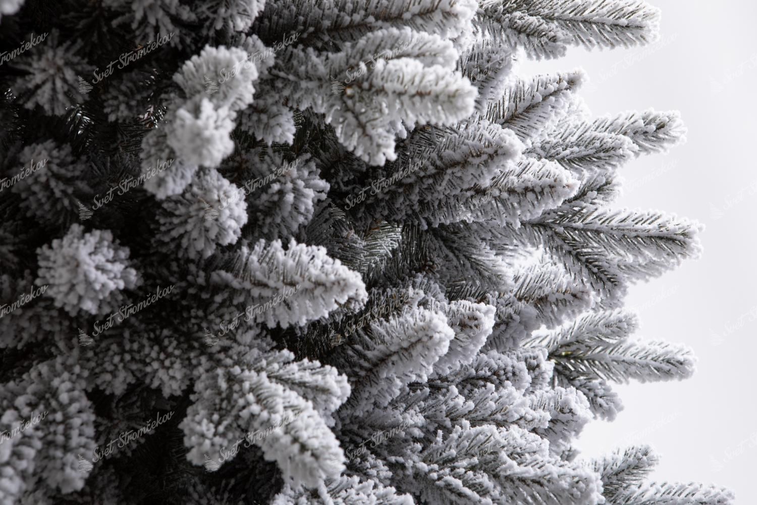 Choinka została wykonana z połączenia trójwymiarowego igliwia PE oraz klasycznych gałązek PVC, które są gęsto pokryte sztucznym śniegiem. Nowoczesna technologia jego aplikacji sprawia, że śnieg nie osypuje się – nawet przy intensywnym użytkowaniu.