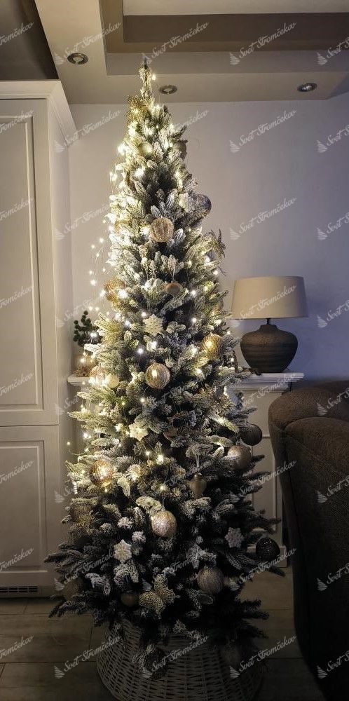 Ten smukły model idealnie nadaje się do mniejszych przestrzeni, gdzie standardowe choinki zajmują zbyt dużo miejsca. Pomimo węższej konstrukcji, choinka wygląda bardzo okazale i tworzy efektowny punkt centralny świątecznej dekoracji.