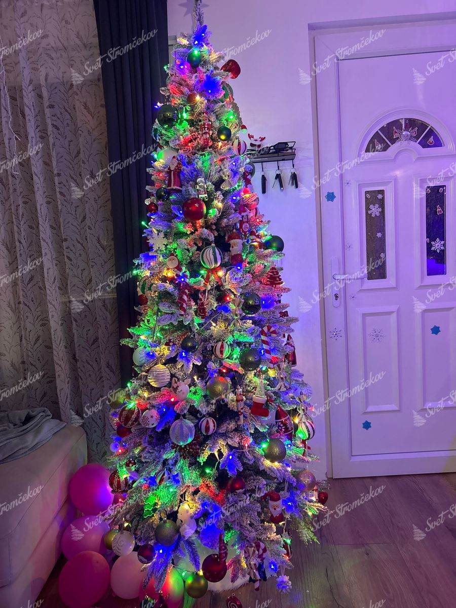 Choinka została wykonana z połączenia trójwymiarowego igliwia PE oraz klasycznych gałązek PVC, które są gęsto pokryte sztucznym śniegiem. Nowoczesna technologia jego aplikacji sprawia, że śnieg nie osypuje się – nawet przy intensywnym użytkowaniu.