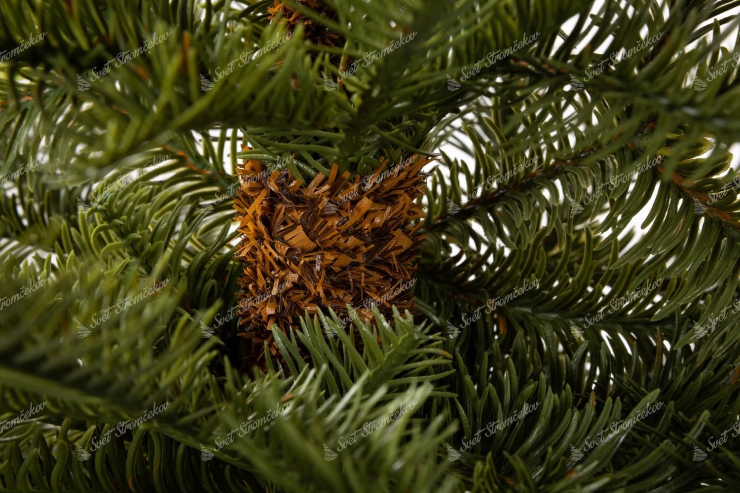 Zadbano o każdy detail – gałązki są rozmieszczone nieregularnie, aby jak najlepiej imitowały prawdziwe drzewko prosto z lasu. Dodatkowo pień choinki ma naturalny, brązowy kolor, co potęguje jej realistyczny wygląd.