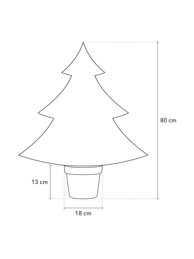 Sztuczna choinka w doniczce PE, wysokość 80 cm, szerokość 45 cm, ciemnozielone igły jodłowe PE, typ igliwia – PE + PVC, wykonanie – ekstra gęste, stojak – doniczka, długość czubka – 20 cm, ilość części – 1