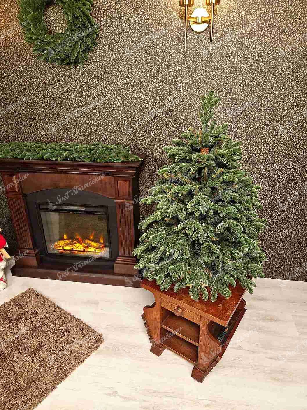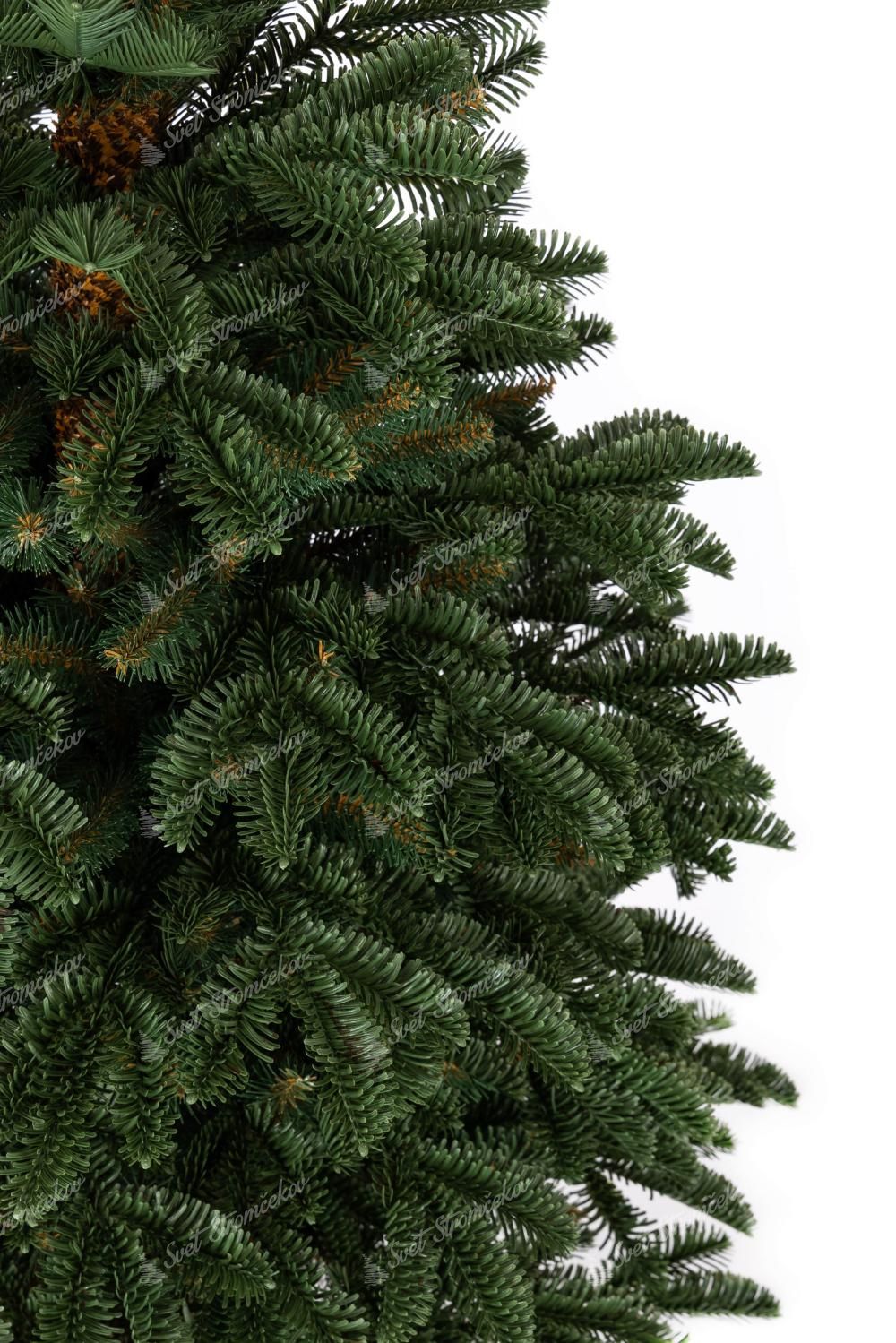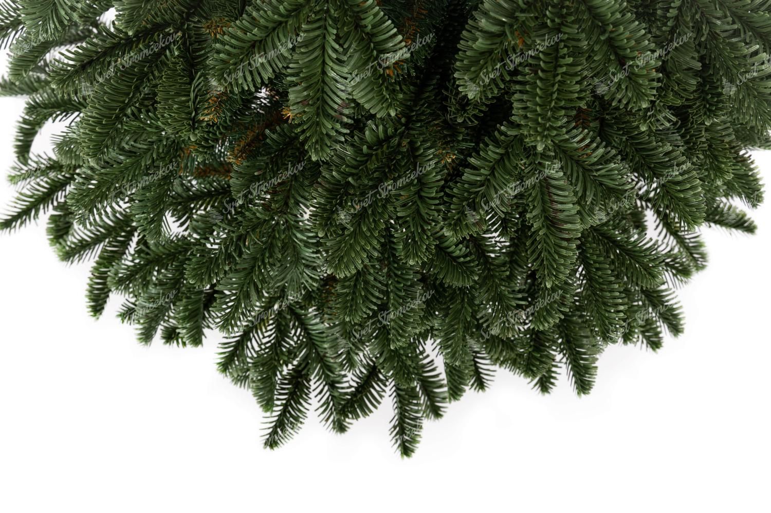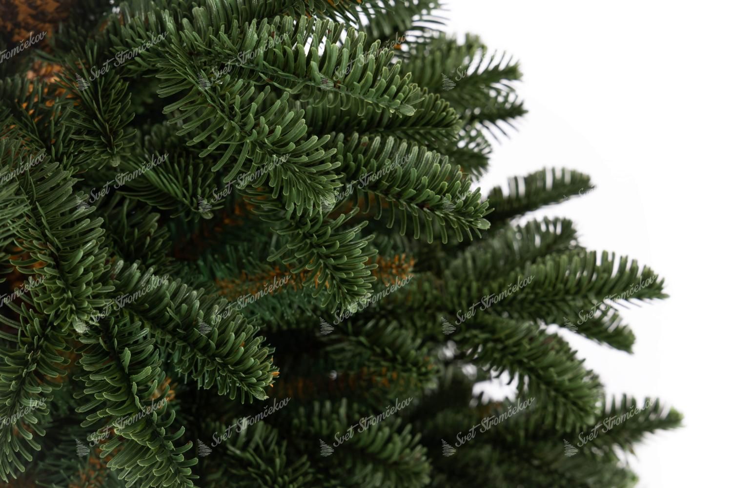Drzewko charakteryzuje się ciemnozielonym igliwiem PE, które perfekcyjnie imituje naturalne gałązki jodły. Nietypowy kształt gałązek nadaje choince nowoczesny i elegancki wygląd, dzięki czemu stanowi choinkę sztuczną jak żywą, idealną do każdej aranżacji. Wnętrze drzewka zostało zagęszczone klasycznymi gałązkami z PVC, co nadaje całości gęstość i pełną formę.