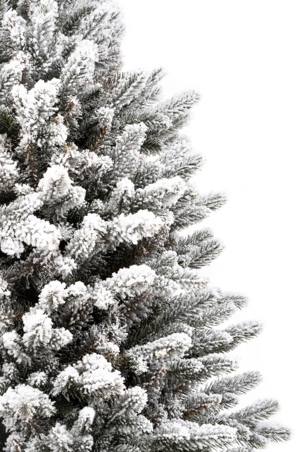 Charakterystyczne śnieżnobiałe końcówki gałązek i naturalna zielono-biała kolorystyka tworzą wyjątkowo realistyczny wygląd drzewka. Igliwie PE po obwodzie choinki zostało uzupełnione o zasypane sztucznym śniegiem PVC gałązki w środku, co nadaje jej pełnej i gęstej struktury. Dzięki zastosowaniu najnowszych technologii śnieg nie osypuje się z gałązek.