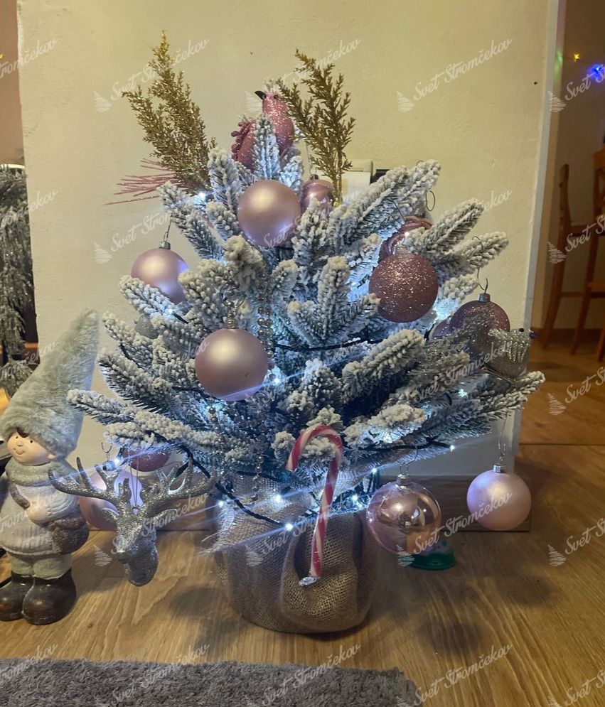 Drzewko osadzone jest w estetycznym jutowym doniczce, co dodatkowo podkreśla jego naturalny, zimowy charakter. Stabilna konstrukcja i wysoka jakość materiałów zapewniają długowieczność i łatwość użytkowania.