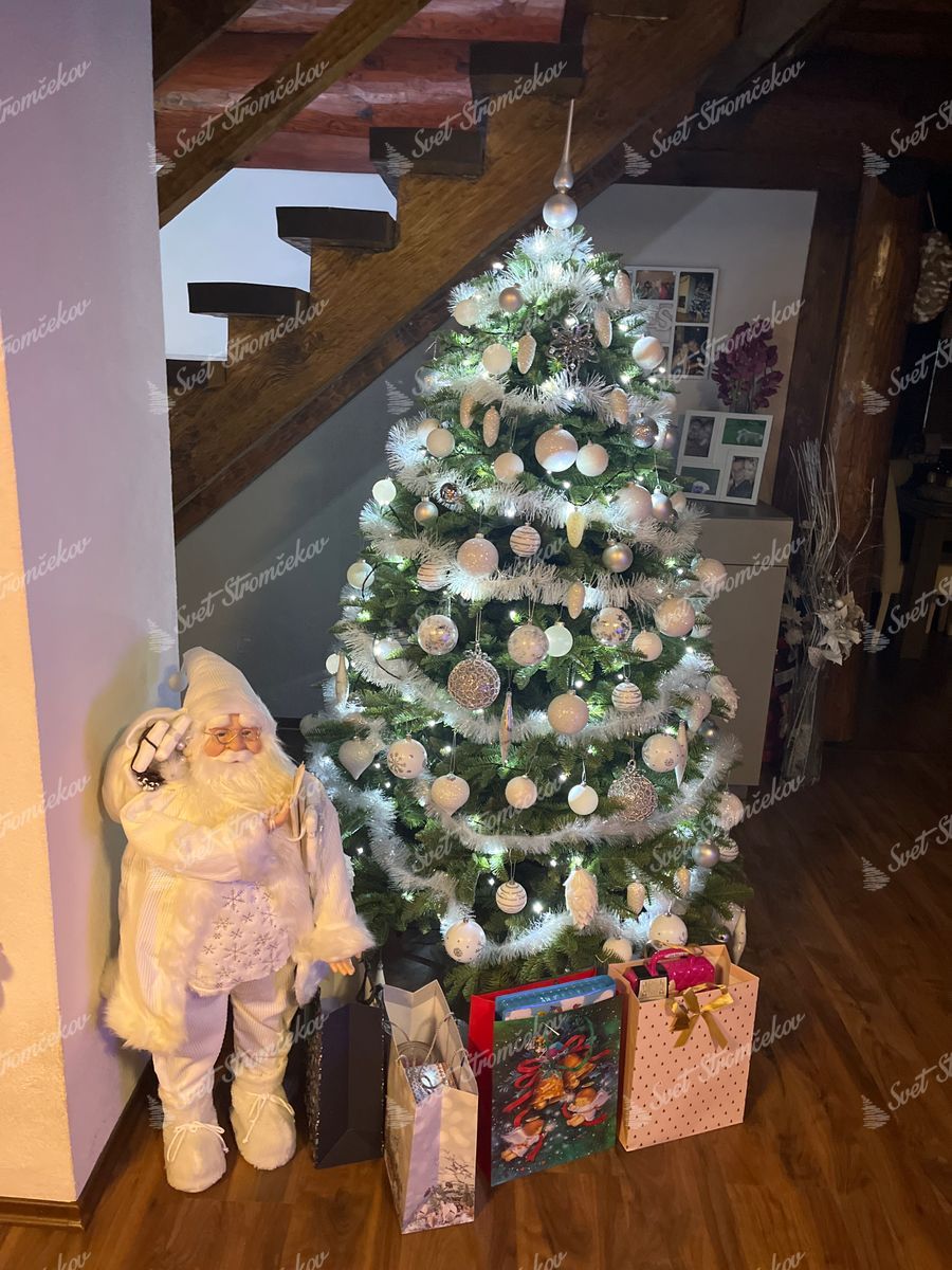 Model XL wyróżnia się aż o 40% większą liczbą gałązek w porównaniu do klasycznej wersji oraz aż 6 końcówkami PE na każdej gałązce – to dwa razy więcej niż standardowo. Gałązki wykonane są z miękkiego, jasnego igliwia PE, które do złudzenia przypomina prawdziwe jodłowe gałązki. Wnętrze choinki zostało dodatkowo wypełnione gęstym PVC, a brązowy pień nadaje całości realistyczny wygląd.