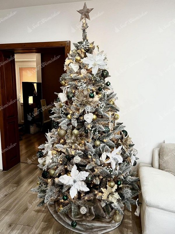 - Choinka sztuczna biała – gęsto ośnieżone gałązki dla wyjątkowego efektu