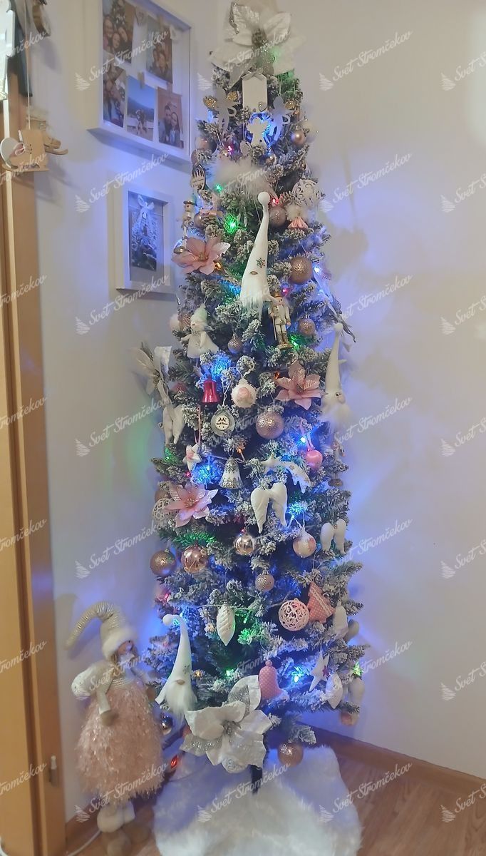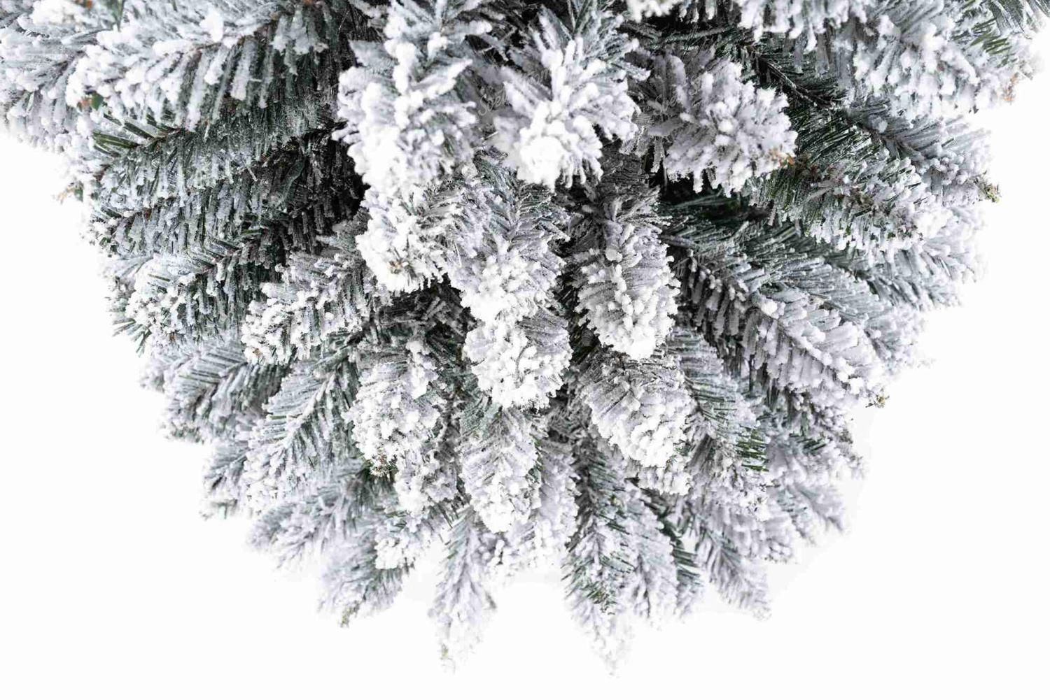 Zastosowane wysokiej jakości PVC gałązki mają naturalnie zielony odcień, który pod warstwą nowoczesnego, sztucznego śniegu zyskuje wyjątkowy wygląd. Śnieg jest nakładany z użyciem nowoczesnych technologii, co zapewnia jego trwałość i estetykę – nie osypuje się podczas użytkowania. Minimalne opady mogą wystąpiť jedynie przy pierwszym rozkładaniu choinki.