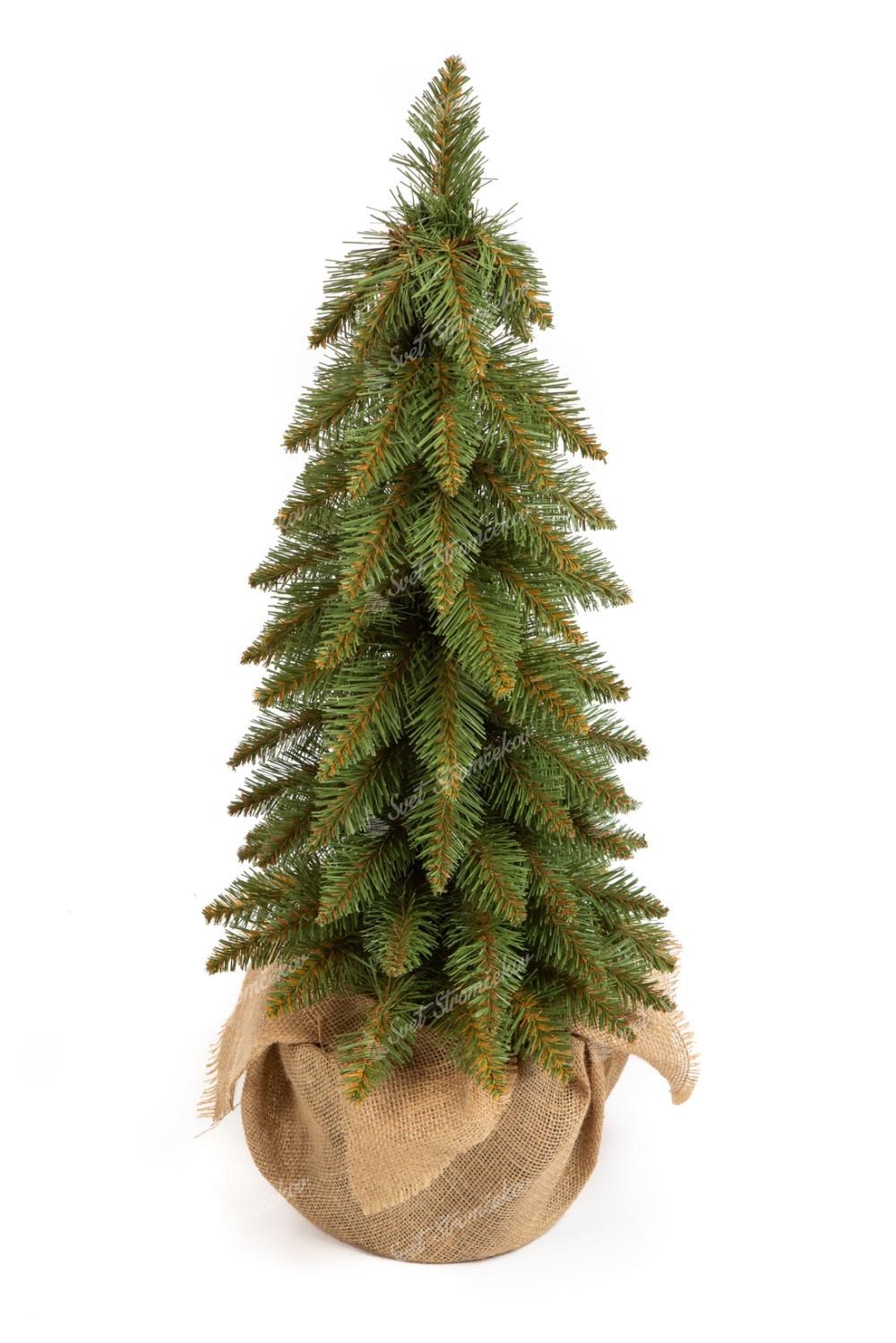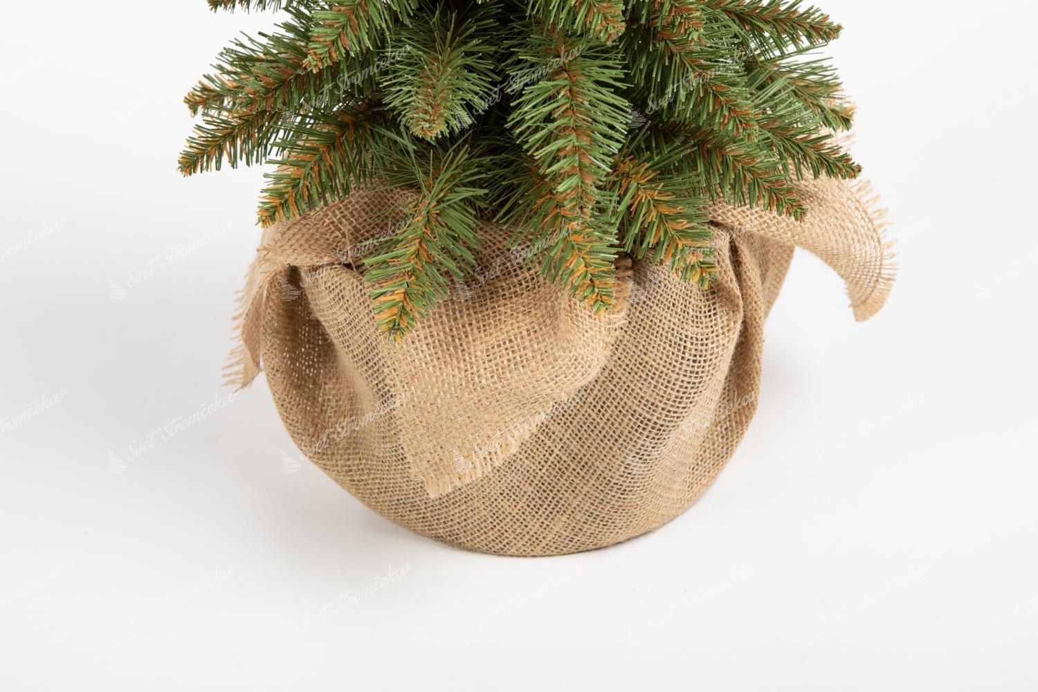 Choinka wykonana jest z wysokiej jakości gałązek PVC w delikatnym, bladozielonym odcieniu, które do złudzenia przypominają naturalne igliwie świerkowe. Całość osadzona jest w estetycznej doniczce z juty, która nadaje jej nowoczesny, a zarazem rustykalny charakter.