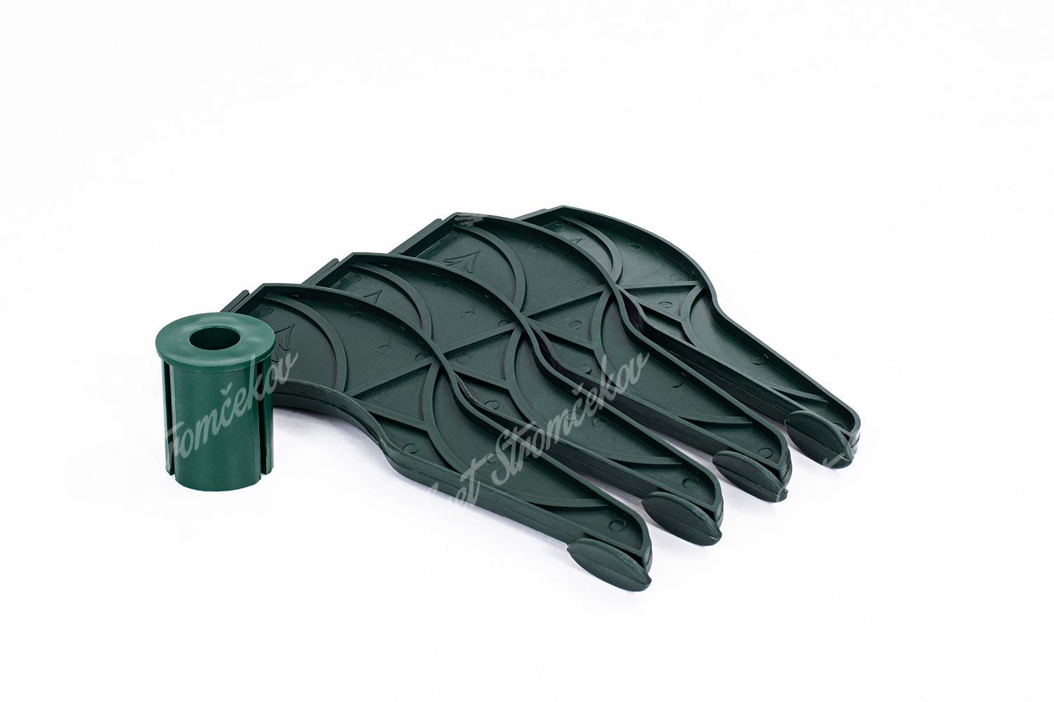 Zestaw zawiera 4 nóżki oraz panel środkowy, który montuje się na pniu choinki.